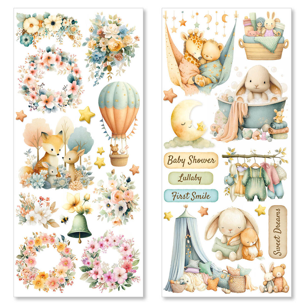 • Set di 5 fogli adesivi trasparenti non tagliati assortiti.