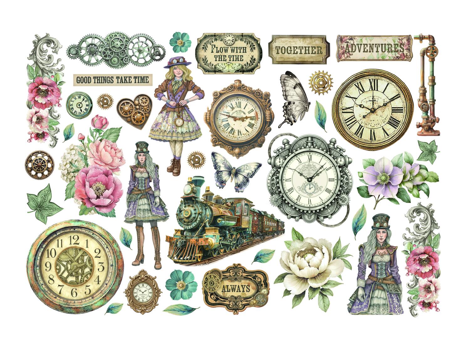 Gli Ephemera sono ritagli di carta adesiva per l'inserimento nel diario. Sono il cuore e l'anima della collezione Gardens of Time.