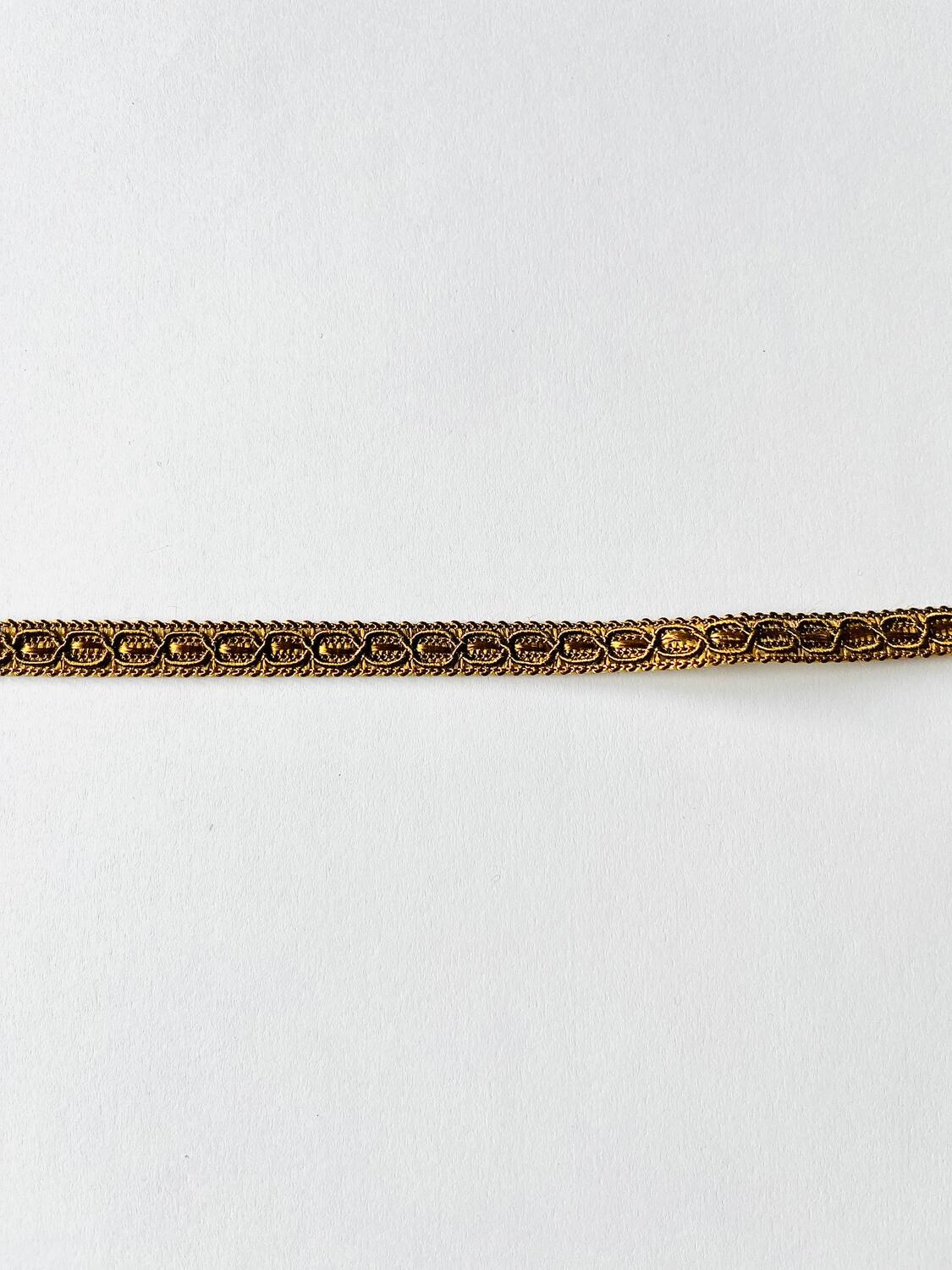 si riferisce a un tipo di passamaneria, un nastro decorativo intrecciato, spesso in materiali metallizzati (lurex, laminati oro/argento) o in tessuti misti (poliestere/cotone), usato per rifiniture e decorazioni preziose.
