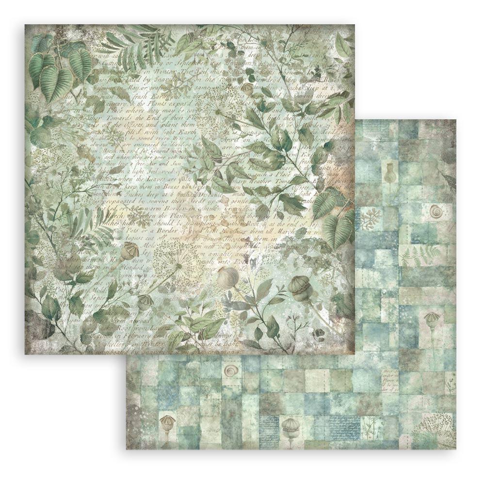 Blocco di 10 carte scrapbooking stampate su entrambi i lati, collezione Herbarium Silvae.