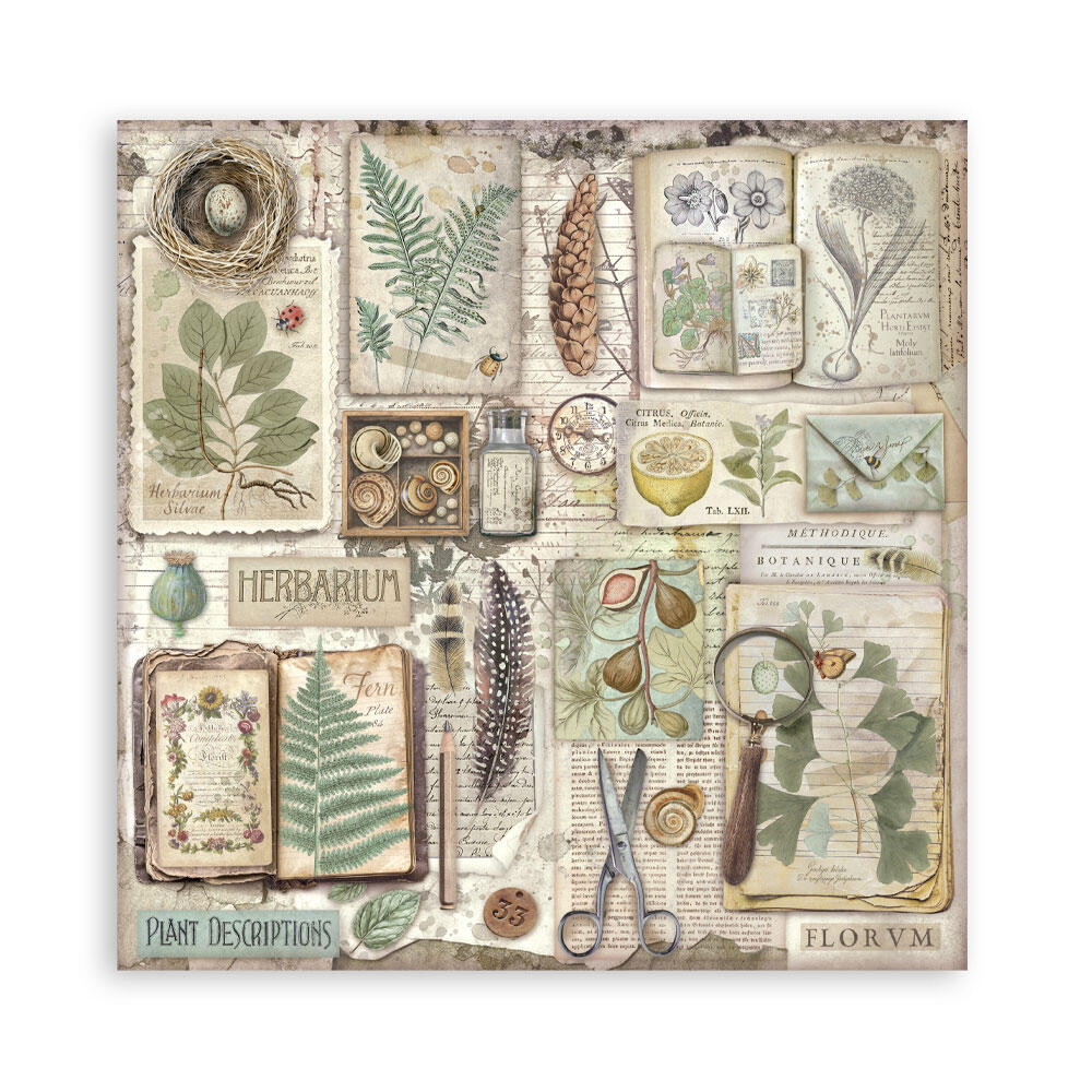 Blocco di carte per scrapbooking stampate su entrambi i lati, collezione Herbarium Silvae.