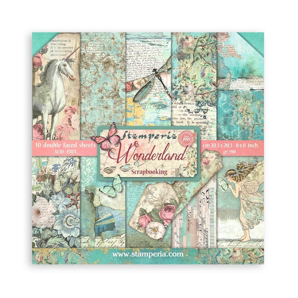Blocco da 10 carte scrap double face Wonderland by Stamperia 190 gr.