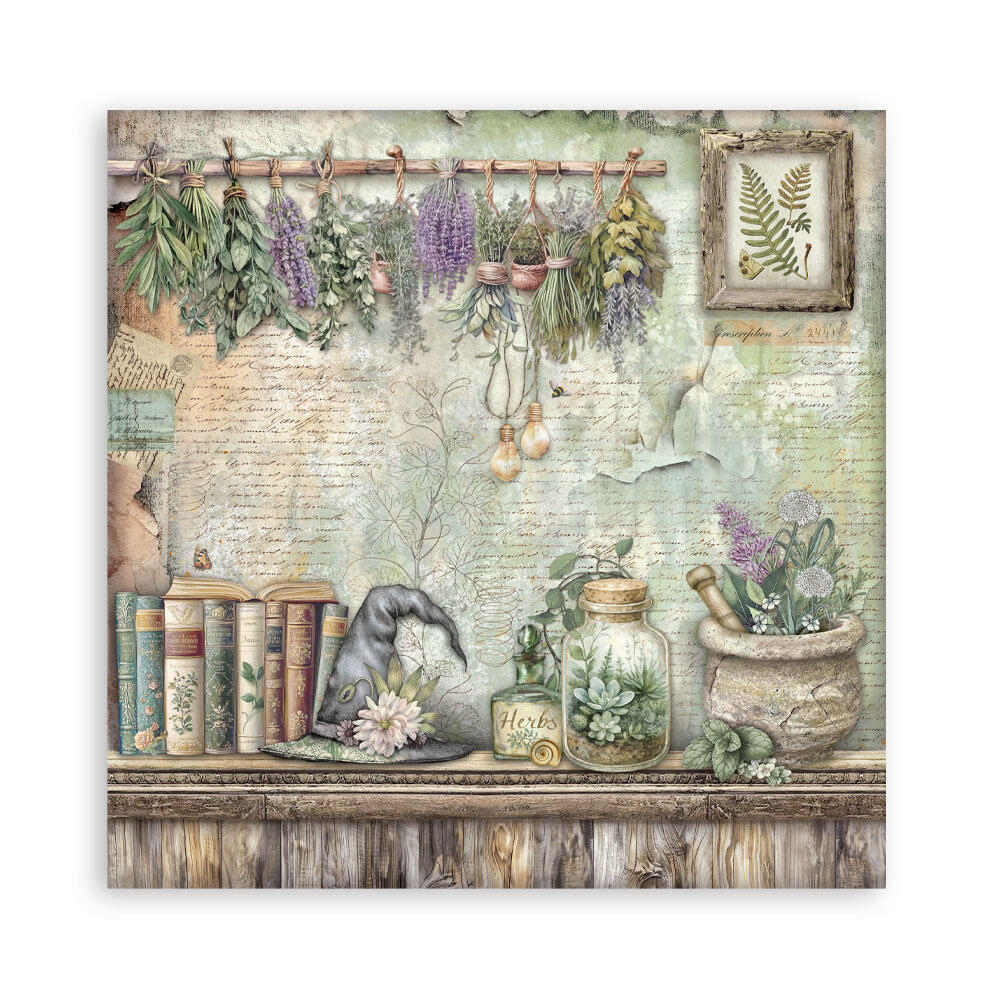 Blocco di carte stampate su due lati della collezione Herbarium Silvae by Stamperia.