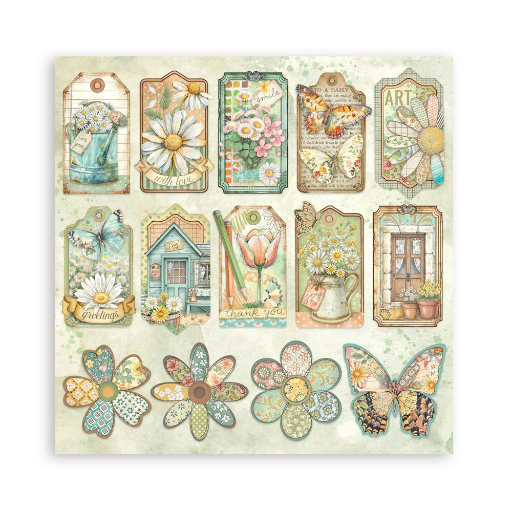 Blocco di carte stampate su un solo lato della collezione Daisy Art by Stamperia.