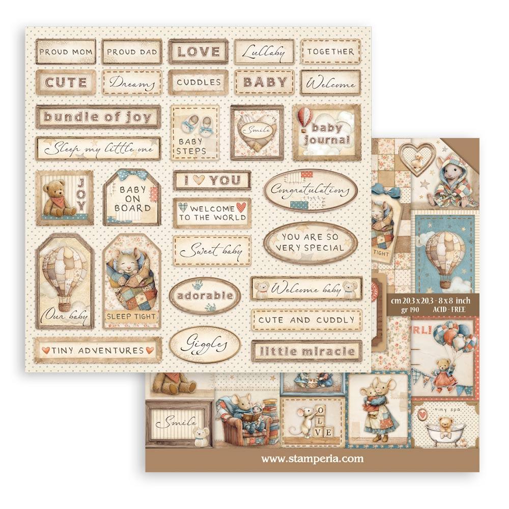 Blocco mini pad di carte stampate su due lati della collezione Baby by Stamperia.