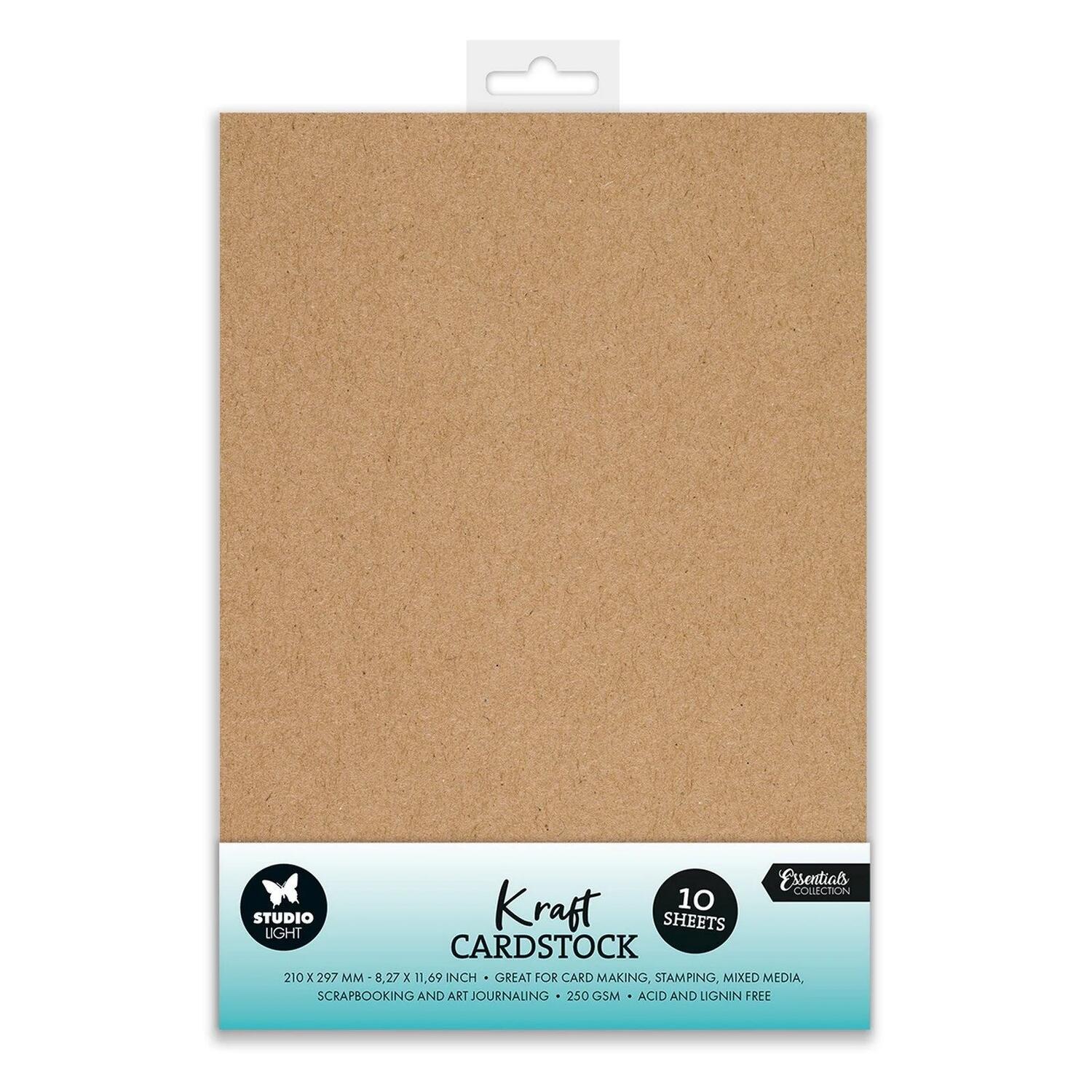 Confezione da 10 fogli di cartoncino Kraft in formato A4 colore avana, 216 gr, acid free.