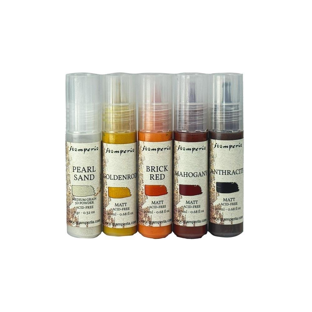 Questo kit contiene colori acrilici in 4 colori e una polvere 3D a grana media. Strato di base: dipingi l'intera superficie del tuo progetto con antracite. Stratificazione: quindi applica macchie di colore più chiare a strati. Volume: mescolare la polvere 3D con l'antracite e applicarla su un paio di parti. Tocchi finali: quindi coloralo di nuovo, picchiettando solo la vernice con la punta del pennello finché la superficie non appare davvero arrugginita.