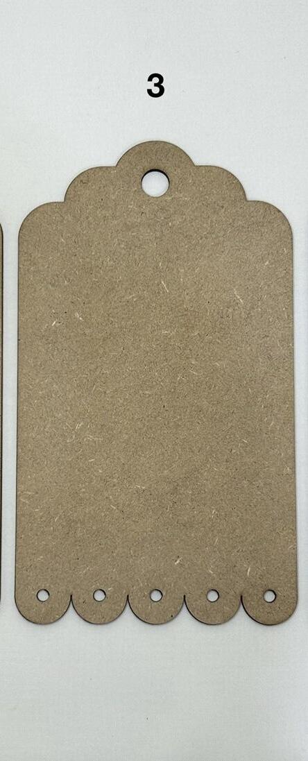 Tag smerlato in mdf, spessore 4 mm, misure 26,5 x 15,2 cm.
