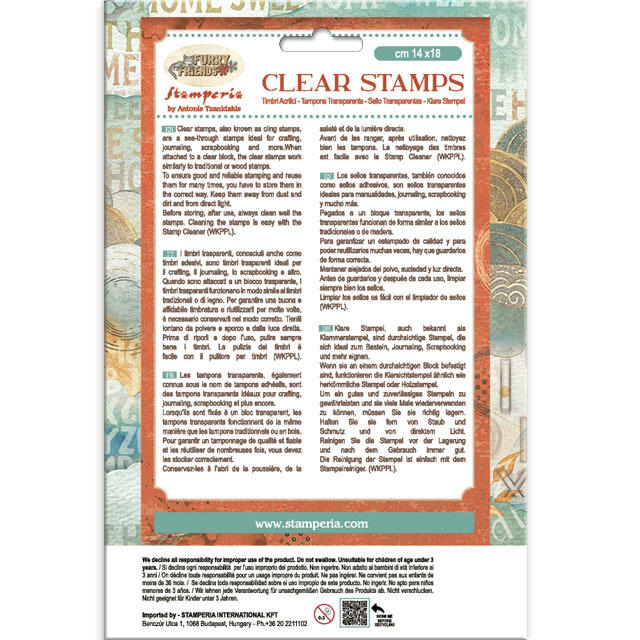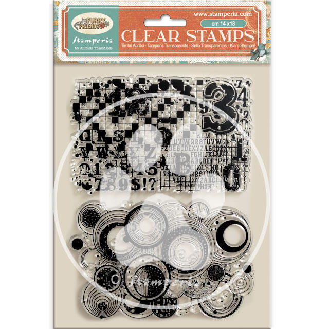 Kit di timbri modulari, con sagome staccabili, in gomma acrilica trasparente e aderente, da incollare sul blocco acrilico Stamperia. Lunga durata, facile da pulire.