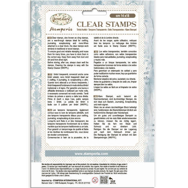 Kit di timbri modulari, con sagome staccabili, in gomma acrilica trasparente e aderente, da incollare sul blocco acrilico Stamperia. Lunga durata, facile da pulire.